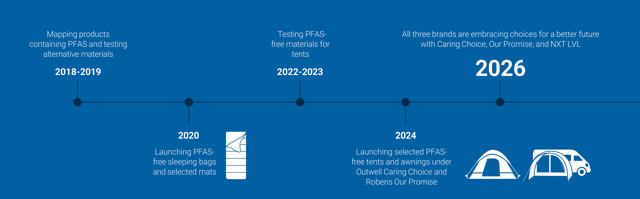 I 2020 nåede vi den første milepæl, da vi lancerede et bredt udvalg af soveposer og underlag fri for PFAS; en fremgang, der blev taget godt imod af både forhandlere og forbrugere.