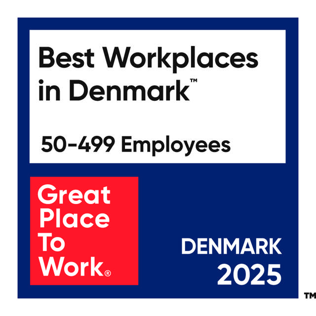 På baggrund af vores høje medarbejdertilfredshed, er vi stolte over i 2025 at blive placeret som nummer 21 i kategorien af virksomheder med mellem 50 og 499 medarbejdere af Great Place To Work.